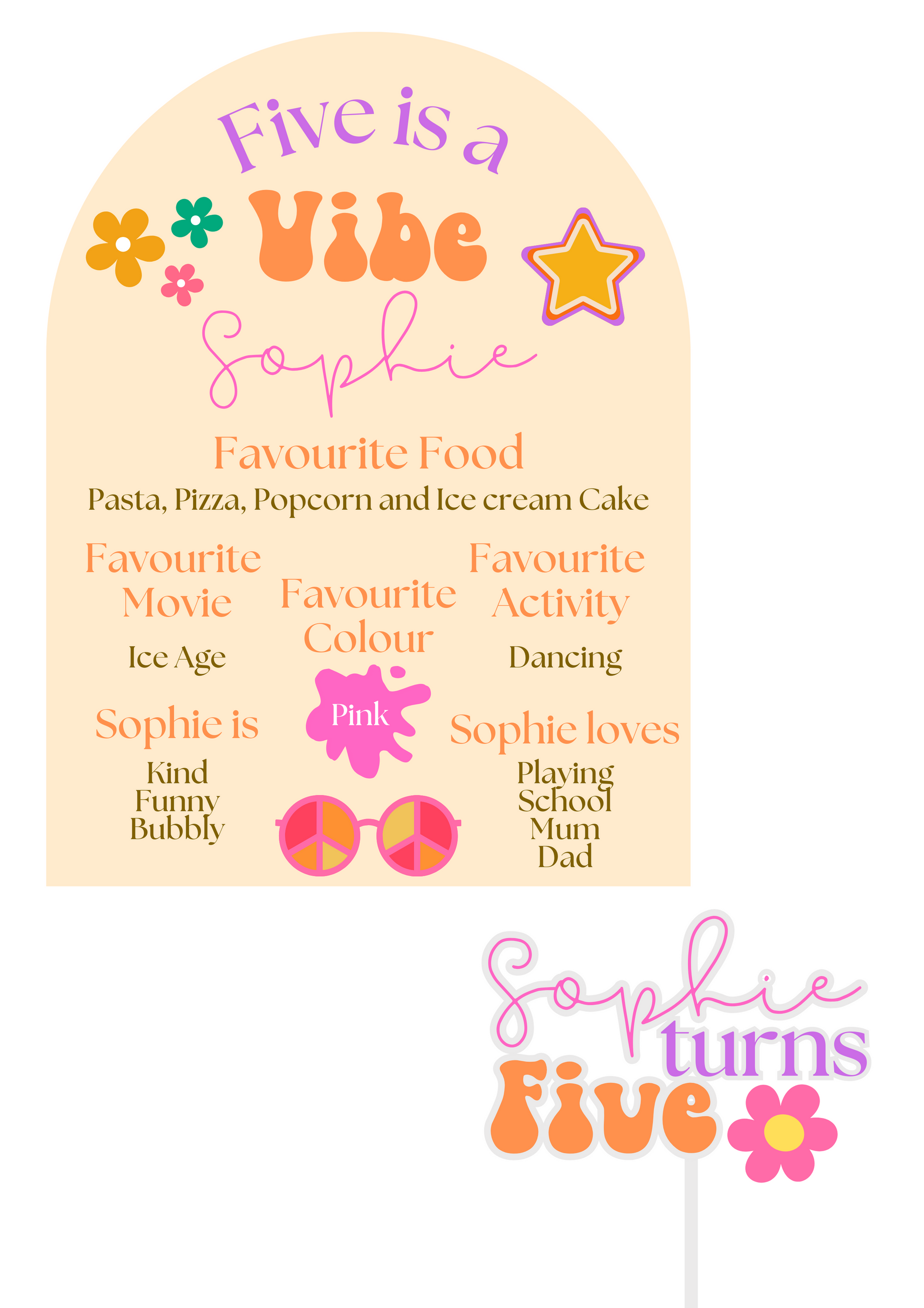 Fifth Birthday Board & Cake Topper Set - Groovy Theme