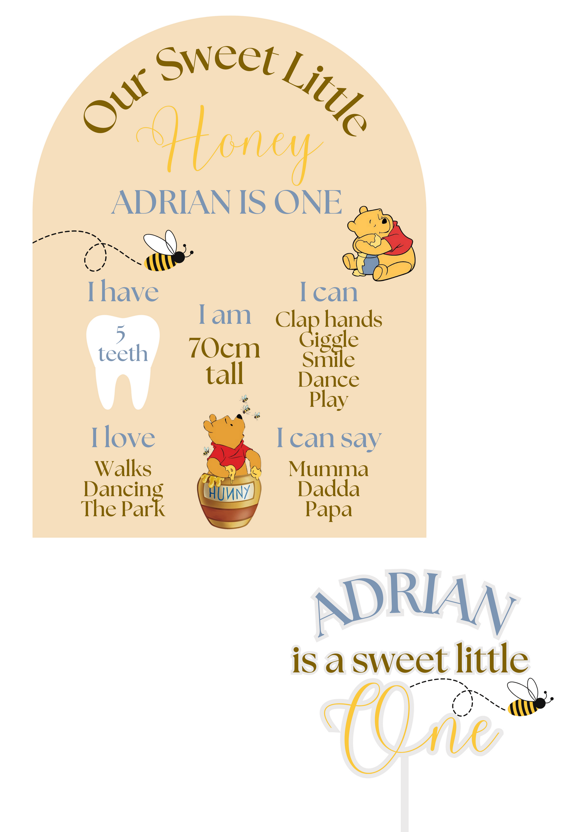 First Birthday Board & Cake Topper Set - Winnie the Pooh Theme