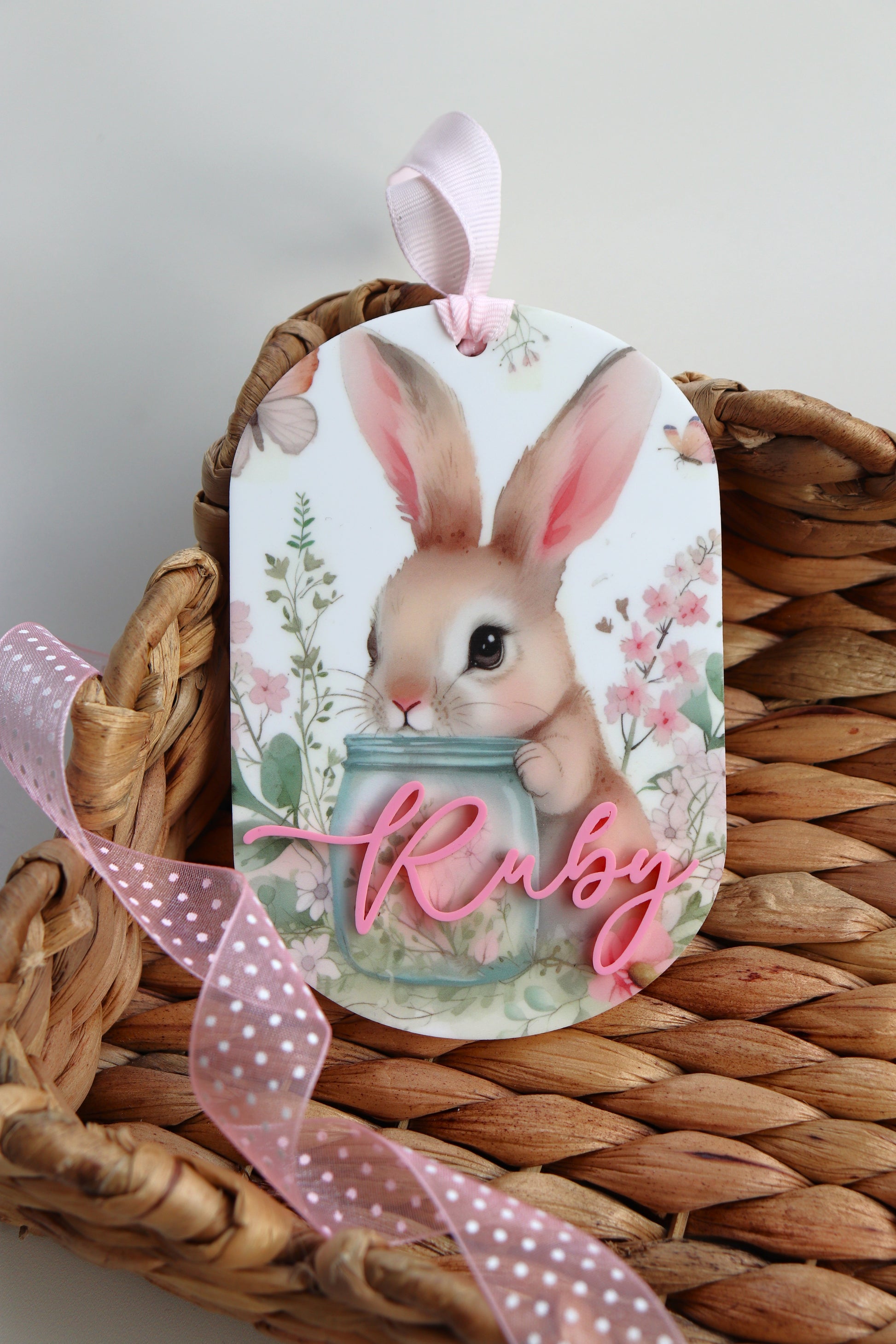 Our precious Easter Bunny oval name tags are ready for their Easter baskets!