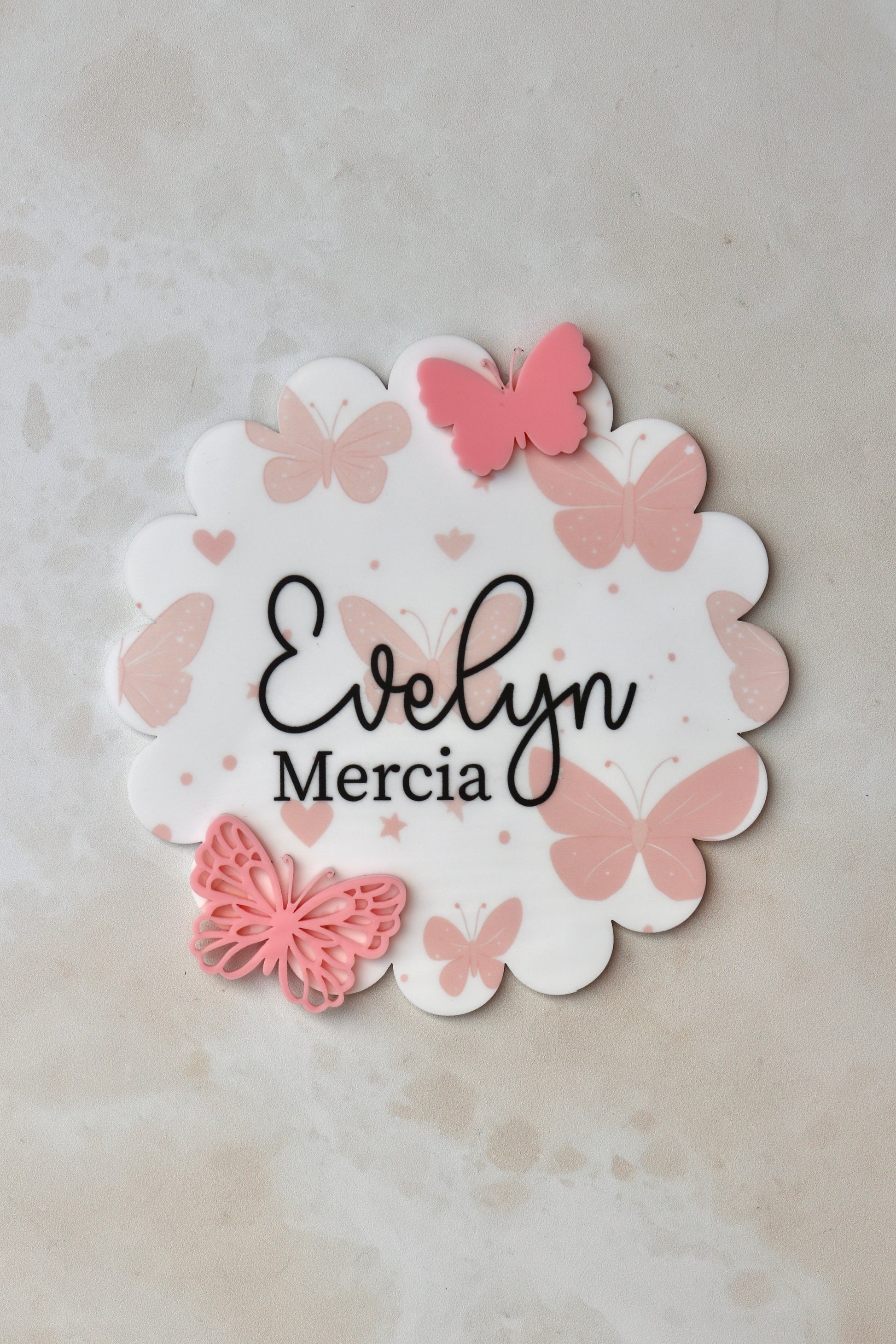 This product is UV Printed onto 3mm acrylic with pastel pink Butterflies.