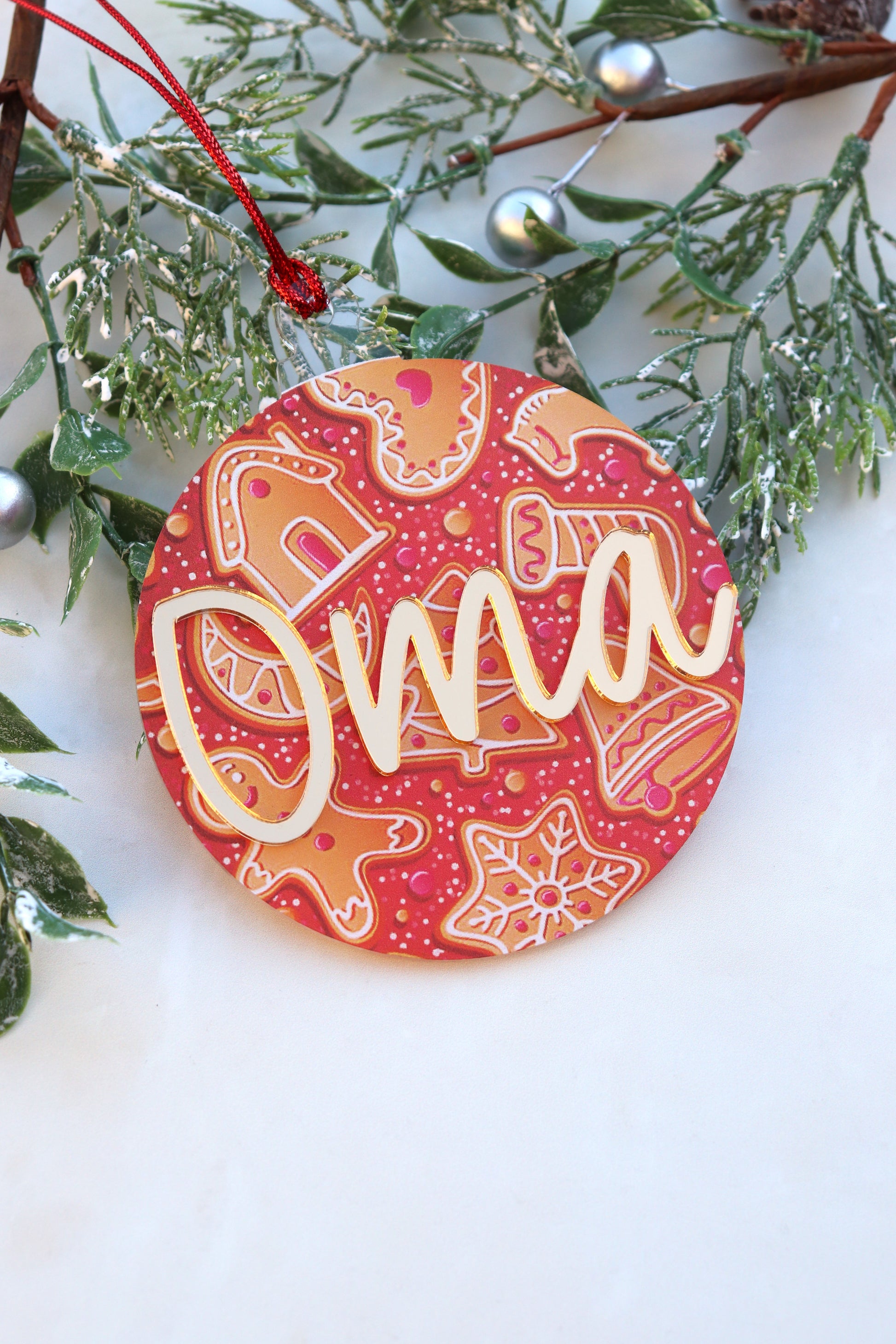 Red Gingerbread Print Bauble